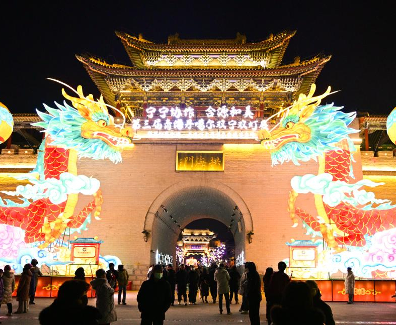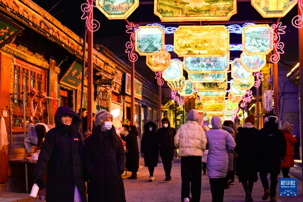 1月2日,人们在青海省西宁市湟源县丹噶尔古城观赏花灯。新华社记者 齐芷玥 摄