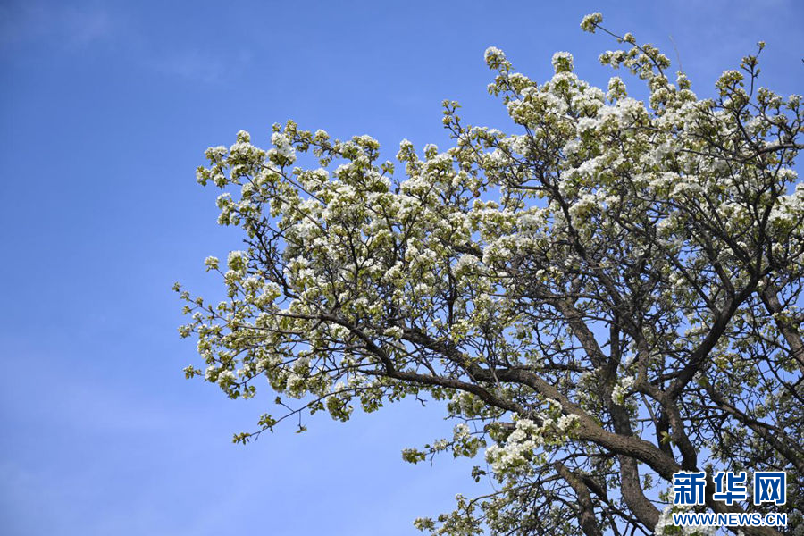 这是4月13日在贵德县拍摄的盛开的梨花。(新华社记者 张龙 摄)