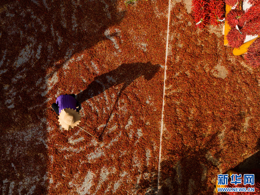 这是循化县农民在晾晒辣椒。新华社记者 张龙 摄